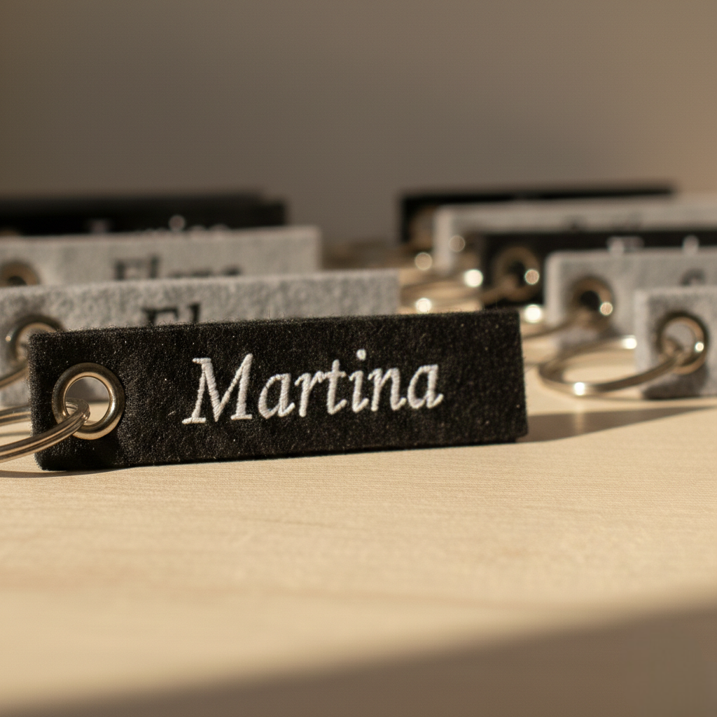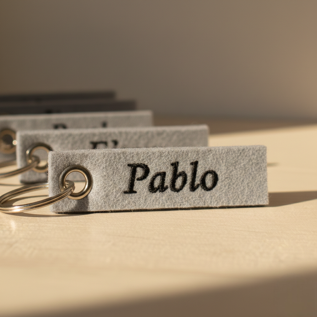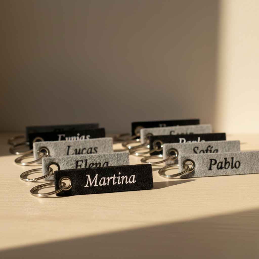 Hay detalles que sorprenden por su sencillez, y este llavero de fieltro personalizado con nombre es uno de ellos. Su diseño minimalista combina la suavidad del fieltro con la elegancia de la personalización, creando un accesorio perfecto para quienes valoran lo práctico sin renunciar al estilo.