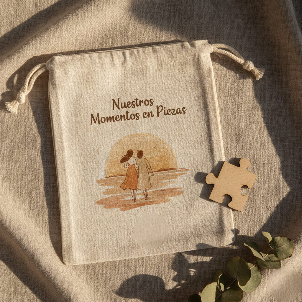 Cada puzle incluye una bolsa de lino tipo saco de 13 × 18 cm, ideal para guardarlo o para presentarlo como regalo. Además, puedes personalizar la bolsa con una frase especial, creando un conjunto aún más personal y significativo.
