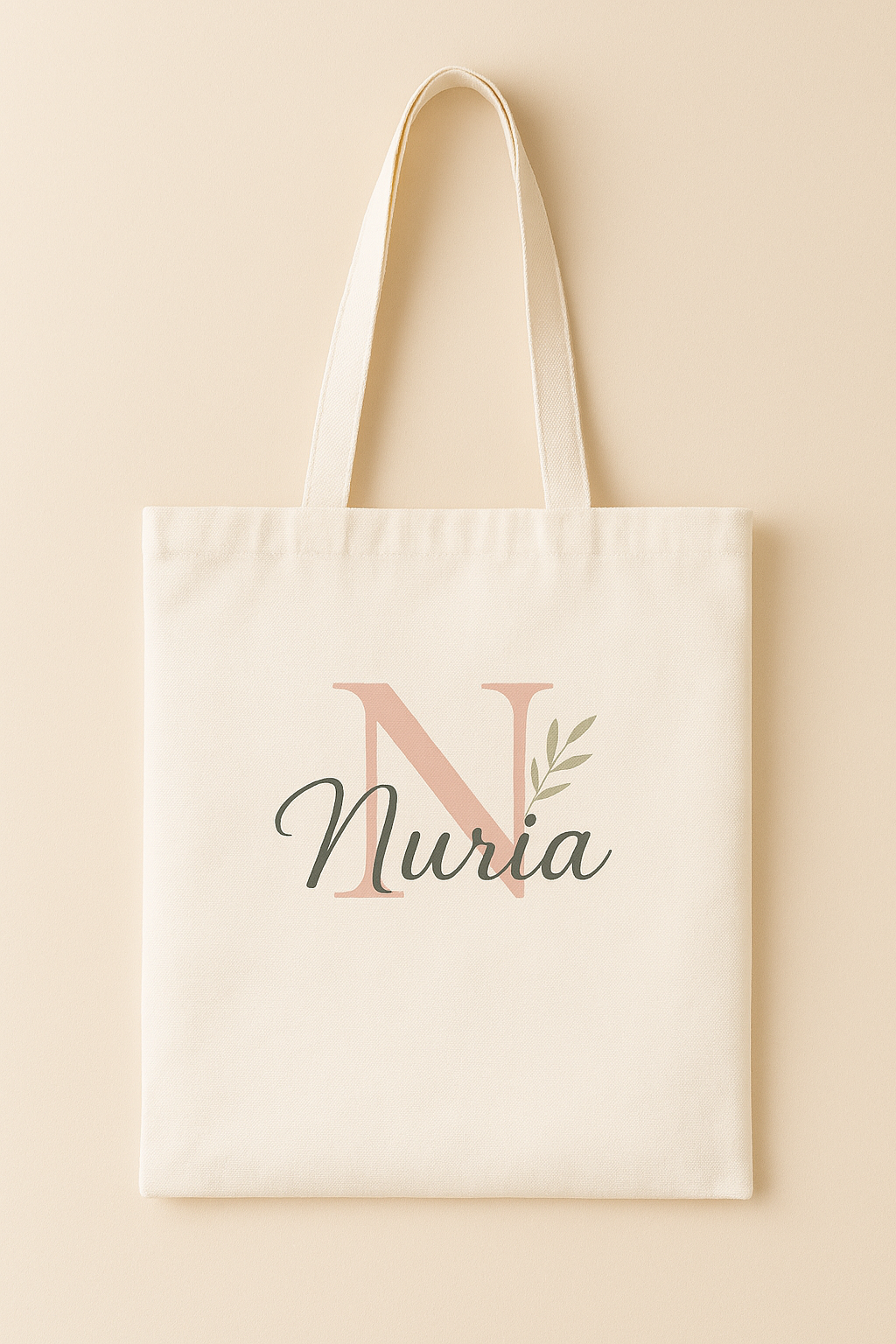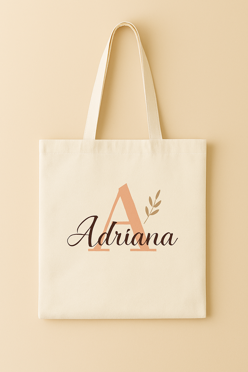 Tote bag personalizada con nombre e inicial, creada una a una con el estilo cálido y artesanal de AdrocreA. Escribe tu nombre e inicial al personalizar y transformaré tus palabras en un diseño único y lleno de intención.